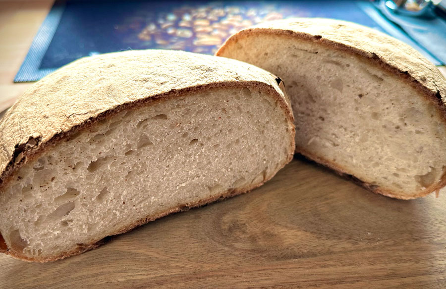 Weizenmischbrot mit Sauerteig – ein harmonischer Genuss aus Weizen- und Roggenmehl, verfeinert mit dem charakteristischen Geschmack von Sauerteig.