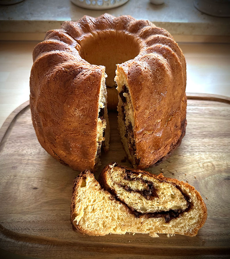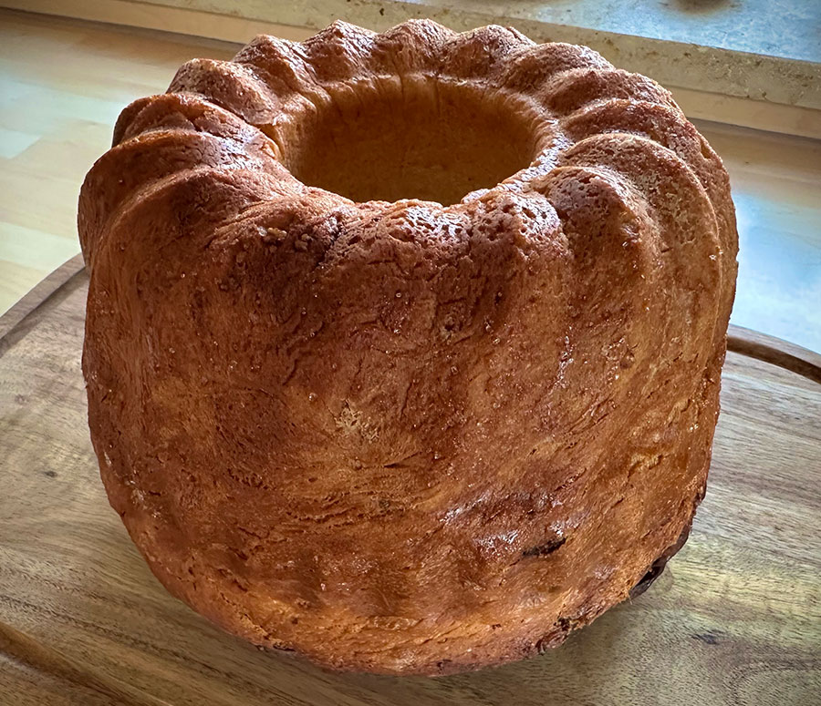 7. Reindling etwas abkühlen lassen, aus der Form nehmen, auskühlen lassen, in Stücke schneiden und servieren.